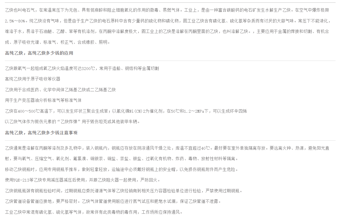 簡要(yào)描述:産品名稱:乙炔|高(gāo)純乙炔其他(tā)名稱:切割氣|電(diàn)石氣分(fēn)子(zǐ)式:C2H2U↕N NO:UN 1001CAS NO:74-86-2産品純度:99.9~99.999%包裝說(shuō)明(míng):乙炔專用(yòng≥)鋼瓶...
